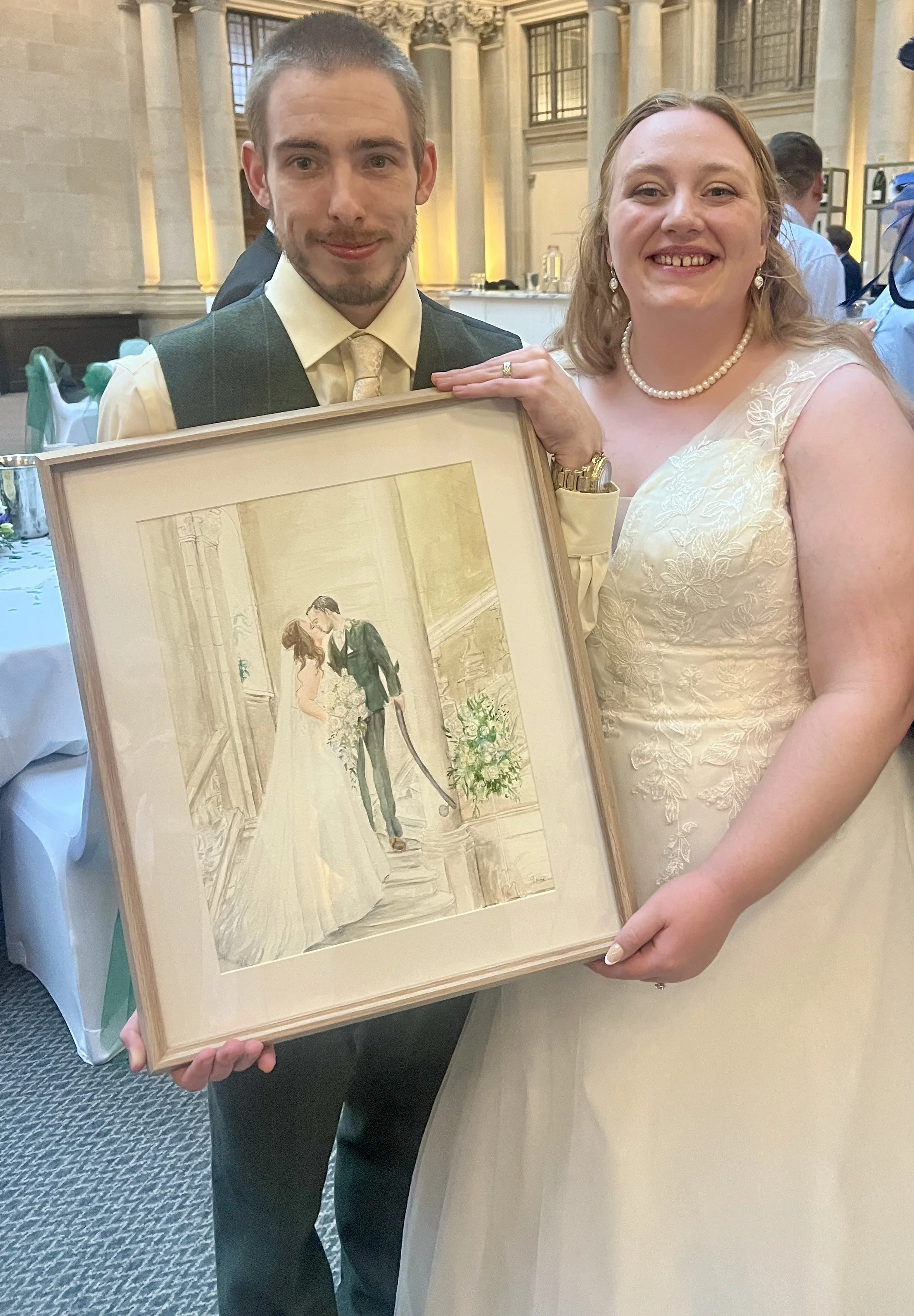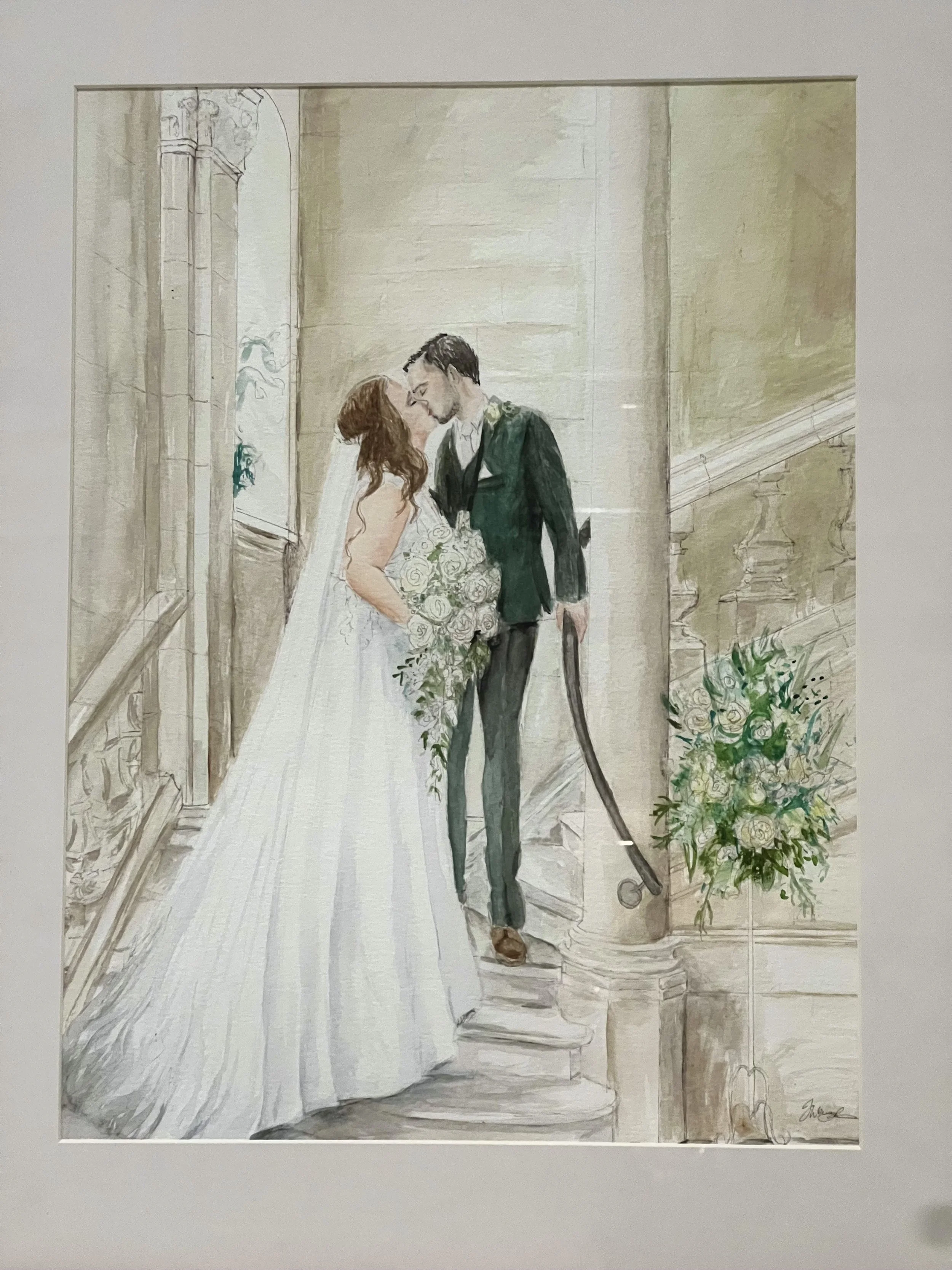 Choose a moment from the day you would like painted, for example: your ceremony. I will create a beautiful and detailed watercolour painting of the scene, framed and displayed on your wedding day